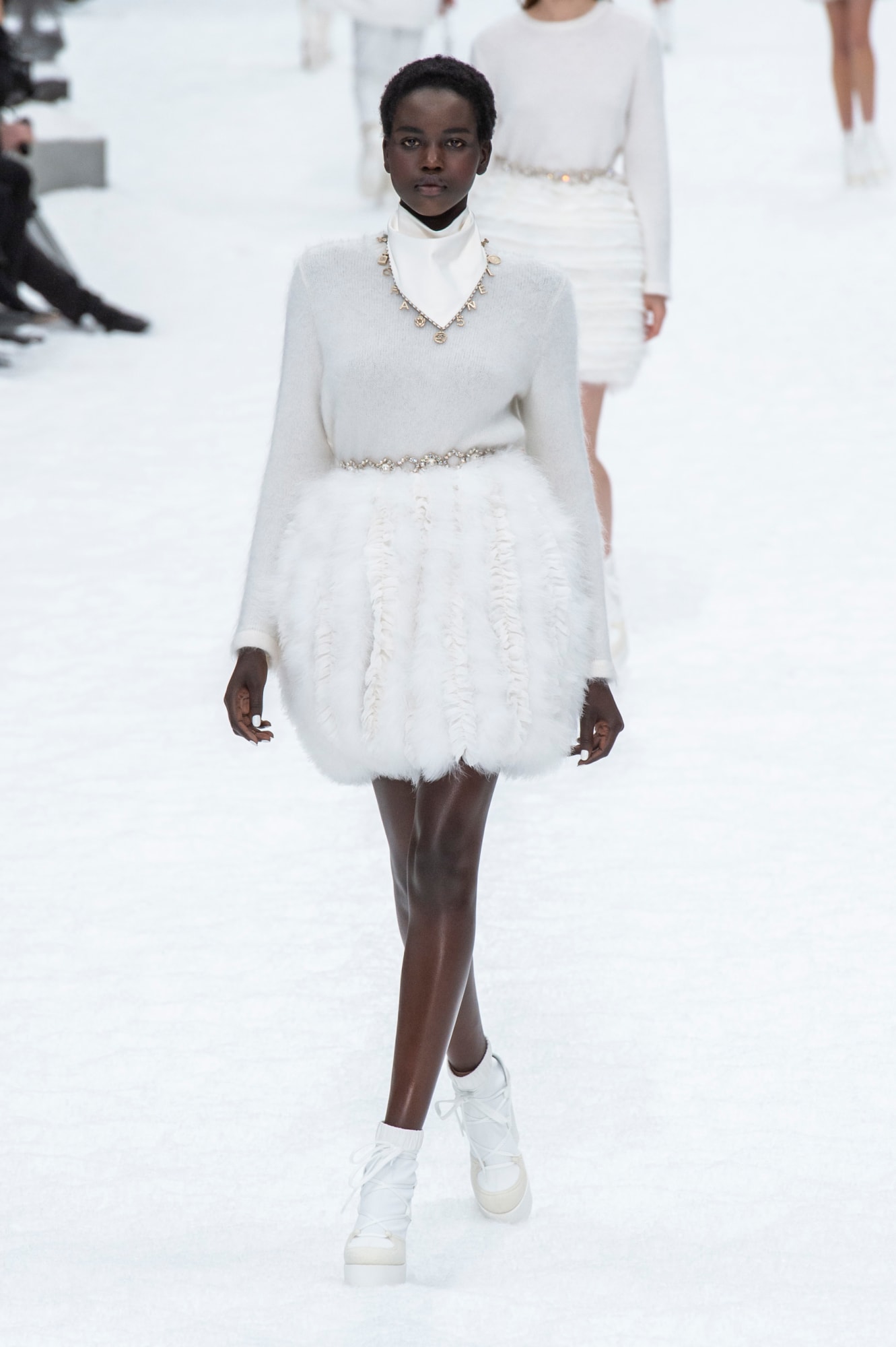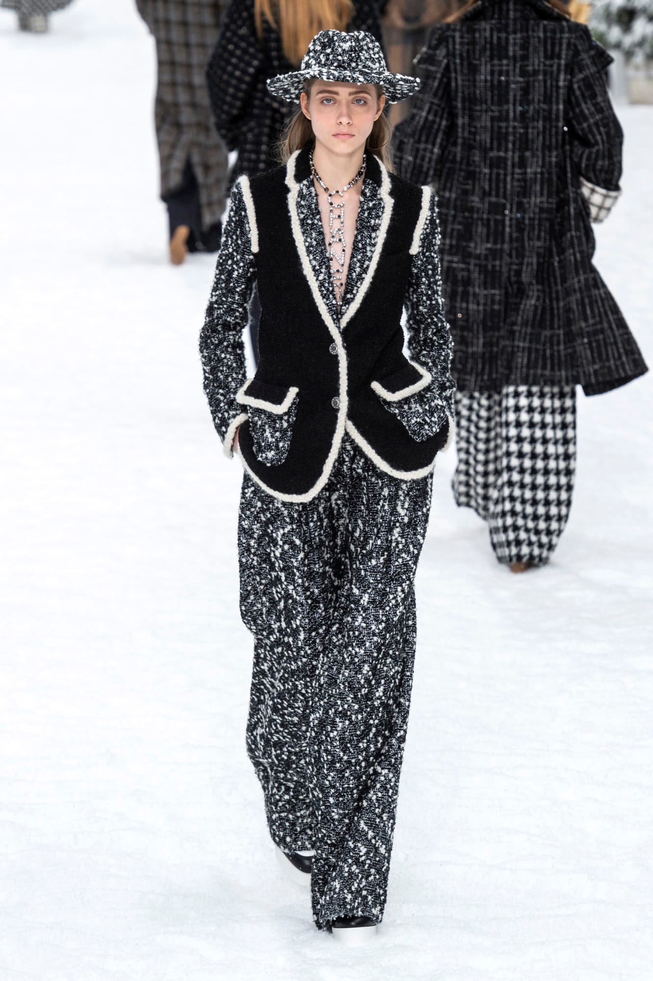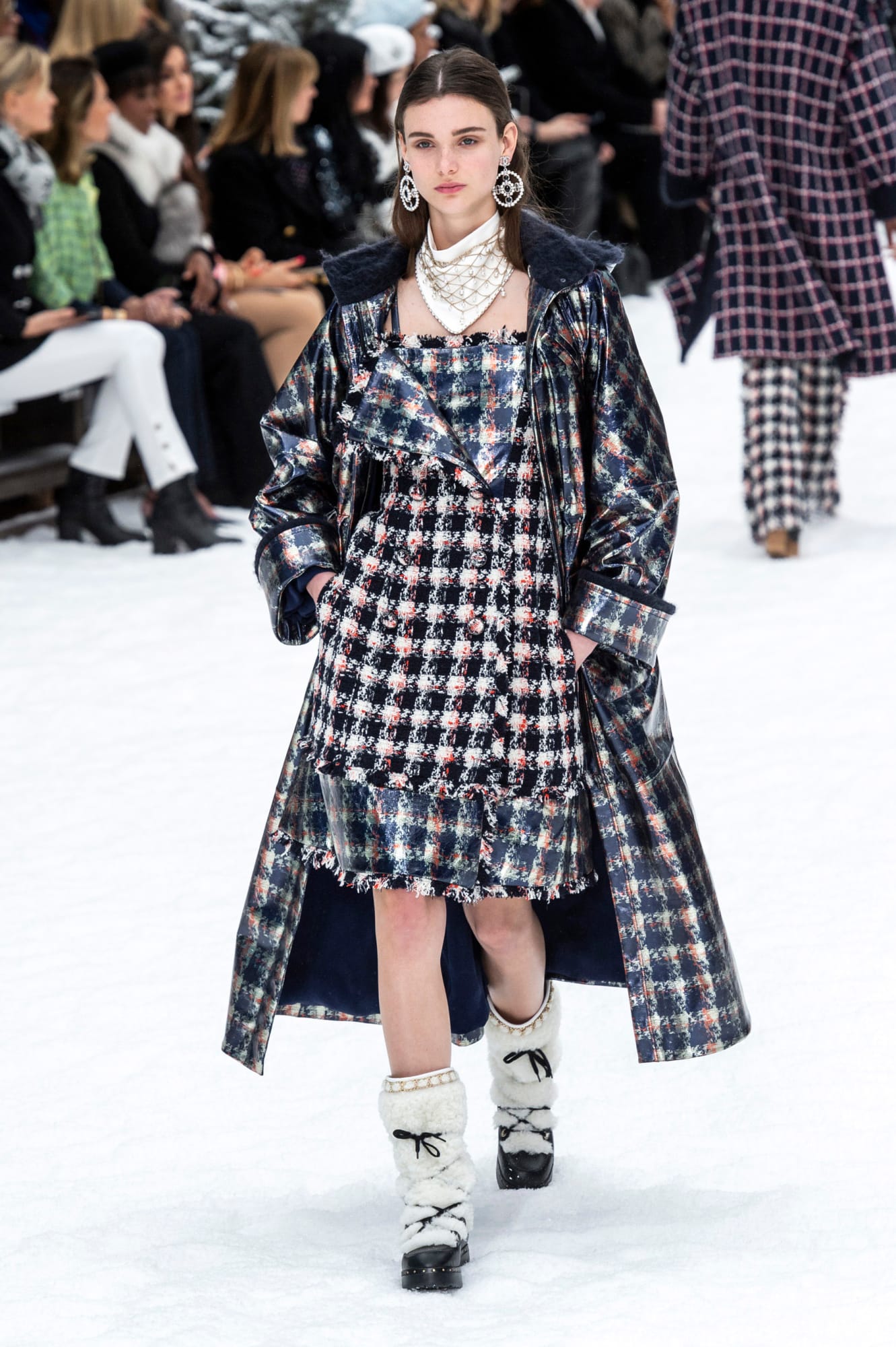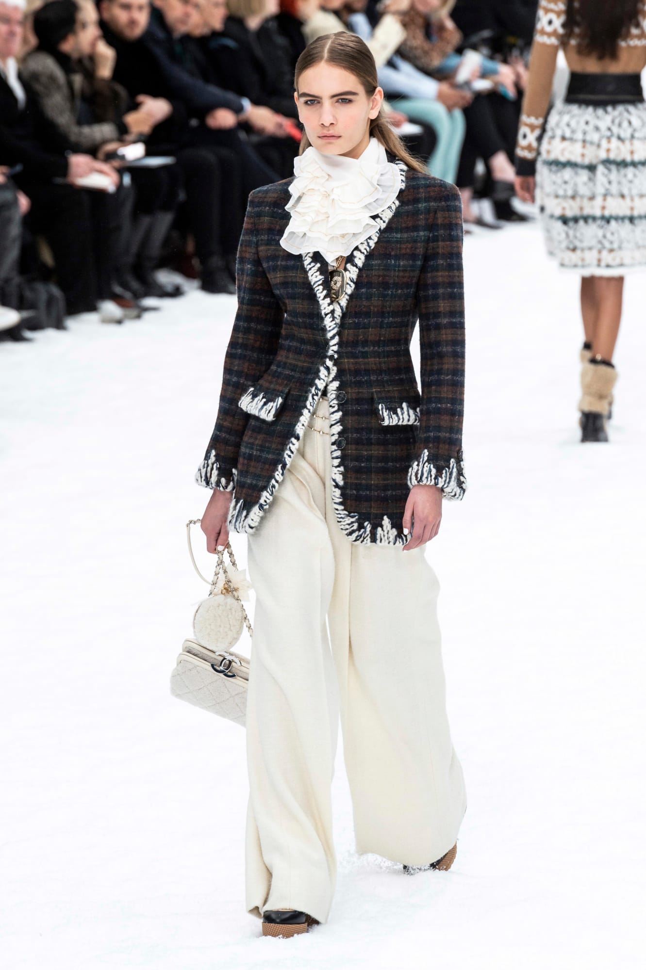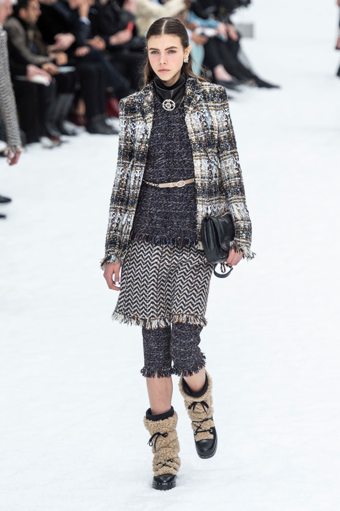 From the winter wonderland-inspired set and the emotional finale to the starry front row and unexpected runway stars, the runway was filled with models in tweed, plaids, leather and all things trendy. The iconic show was not void of celebrity like Penelope Cruz, and top models like Kaia Gerber and Adut Akech. Here are every looks from Karl Lagerfeld’s final Chanel collections: