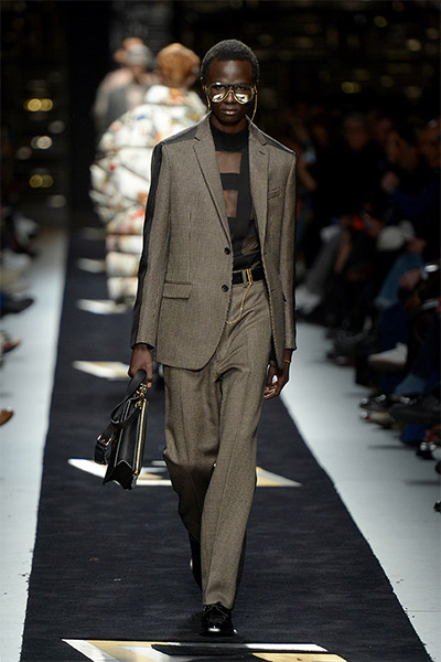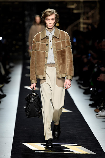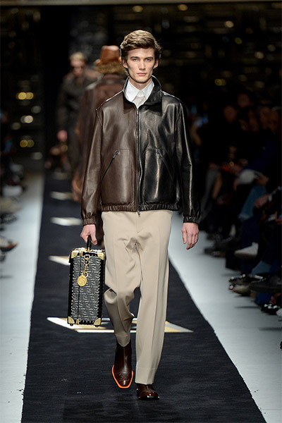 Most looks were accompanied by several forms of baggage which included Fendi logo-ed briefcases, trunks and newly introduced male versions of the brand’s iconic Peekaboo bag and Baguette. The man created throughout this collection was a tailored contrast to the street-like Fendi man previously seen, but he was in fact a character who wore timeless well-made pieces flexible enough to pull out the closet during any season of the year. Visit Fendi for more.