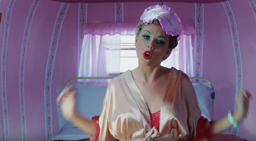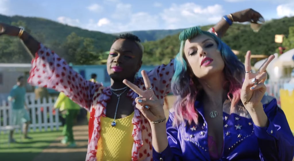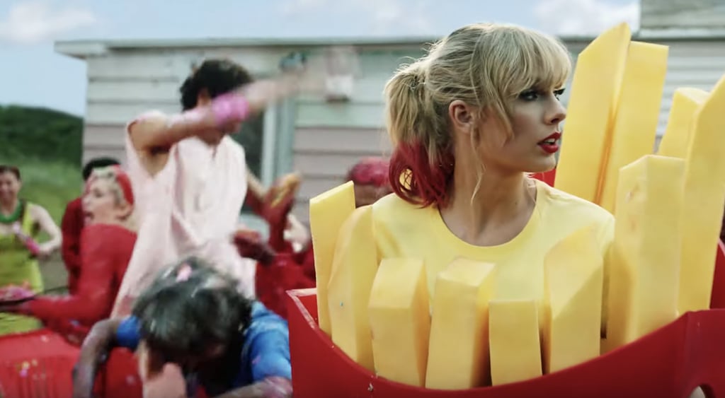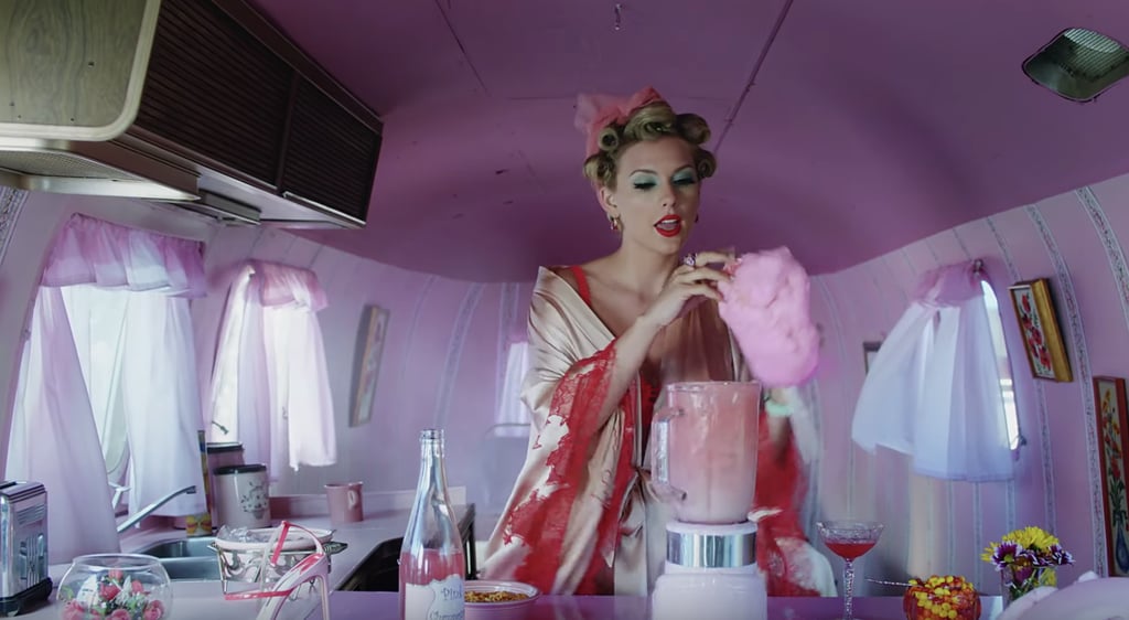 Taylor Swift changed her hair colours many times, in slushy pink, blue , and kaleidoscope purple which reminds of a circus. The video was a food themed video with fabulous makeup looks, including the water colour beauty look trend- a turquoise eye shadow and red lip combo. Laverne Cox in a big blowy hair, Jonathan Van Ness in a crystal crown. Overall, it was a beauty trend video hidden in a food circus..Taylor Swift new Music video is available on Taylor swift VEVO YouTube channel.