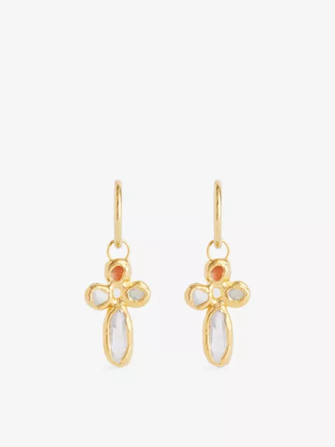 The exquisite artistry details of Clio Peppiatt’s is to be admired in this meriposa crystal embellished beaded tulle mini dress, to style it we decided to finish it with a pair soft blush pink patent scrappy sandals, and gold metallic mini chain bag. The dress and the bag have a lot of jewellery going on with them, so not to go overboard a simple pair of cross earrings are just enough to brighten the face.