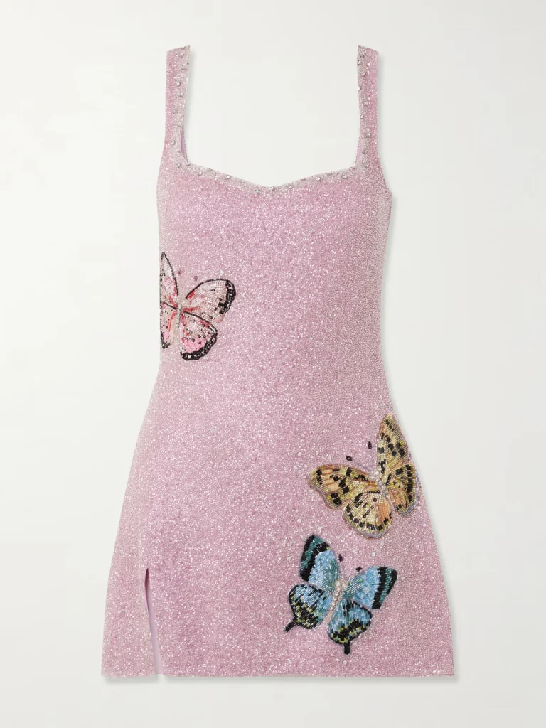 Speaking of mini dresses, a mini dress from net-a-porter stood out and we at COVET can’t help but bring it to your attention – it’s a summer wedding parties must have. It’s a dress you’d wear to show off your sculpted legs, it’s a dress that speak youthful glamour and it easily transforms to fit any woman of any age. It’s transformative power, with it’s side slit, and embellishment are what gives the dress an edge, not only that the butterfly details and soft pink hue it comes in celebrates the femininity in any woman.