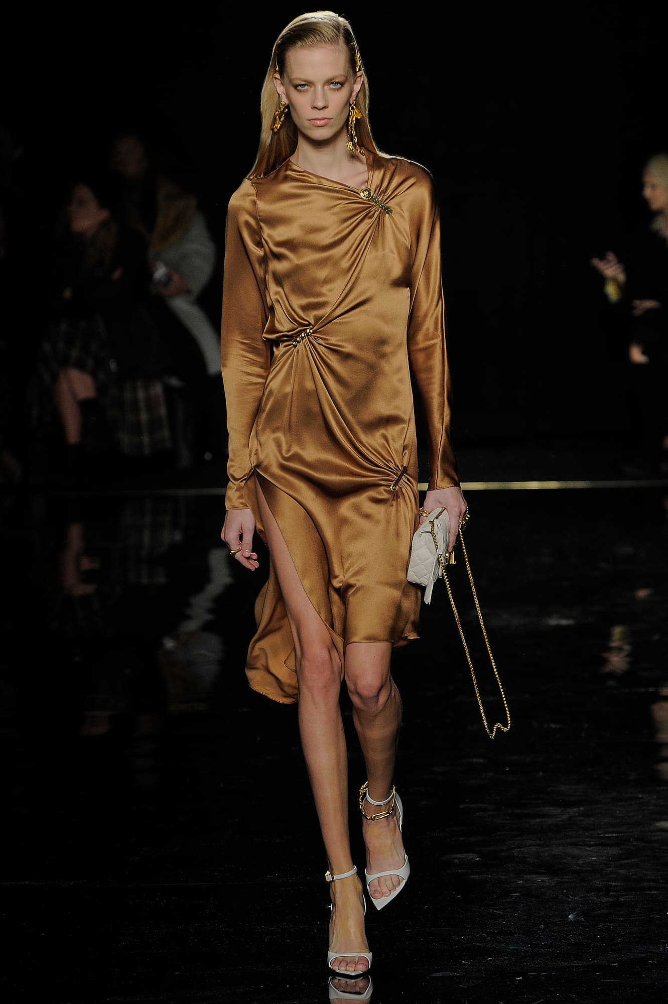 The Italian house’s first-ever pre-collection runway show — which fell between Alexander Wang’s and Chanel’s on the new December fashion calendar — attracted an impressive list of attendees despite the gloomy weather, a fact that’s not too surprising considering just how many celebrities, models and industry bigwigs love and respect Donatella. Among the front-row guests sat Kim Kardashian and Kanye West, Lupita Nyong’o, Diane Kruger, Tracee Ellis Ross, Young Thug, 2 Chainz, Blake Lively and Paris Jackson, all dressed head-to-toe in outfits (many of which were custom) by the brand.